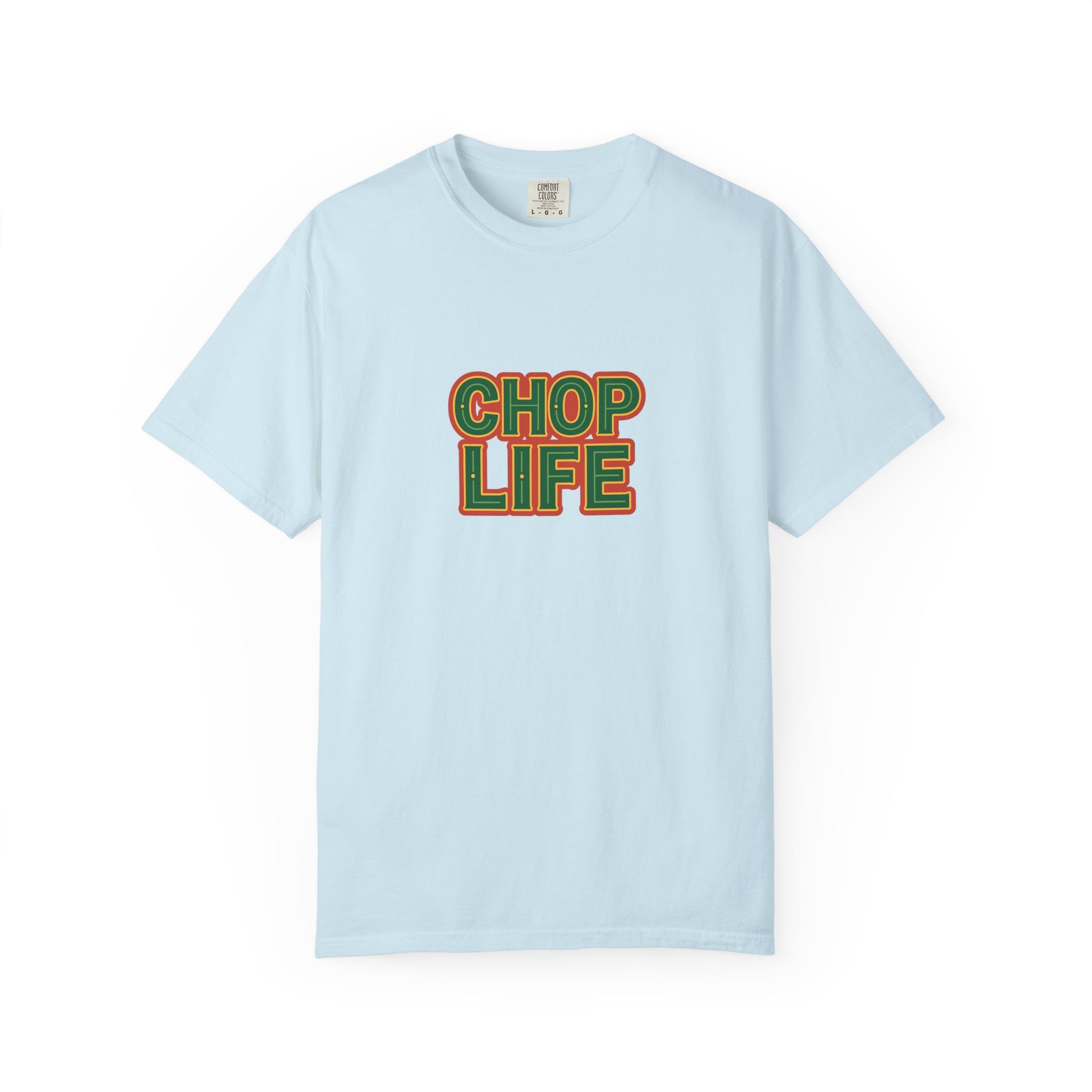This 'Chop Life' T-shirt exudes a fun and carefree vibe, perfect for those who enjoy expressing their playful side. It is ideal for casual wear and can be a great conversation starter. This T-shirt is relevant for those who celebrate humor and enjoy unique designs.