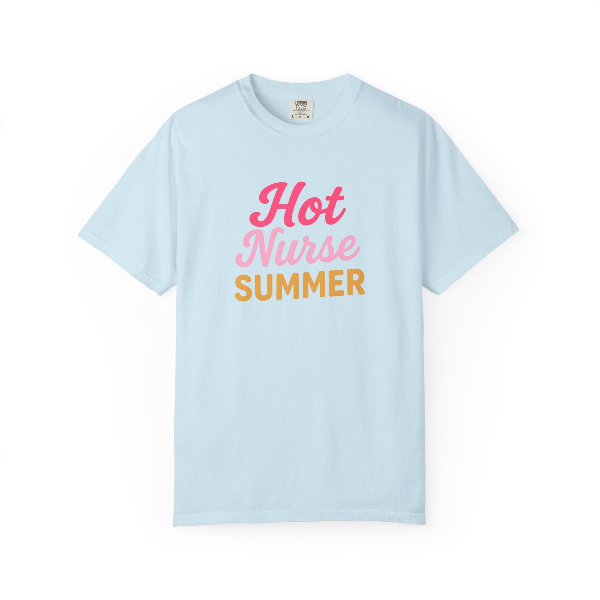 This Hot Nurse Summer Wine T-shirt is a garment-dyed t-shirt; made 100% with ring-spun cotton. The soft-washed, garment-dyed fabric brings extra coziness to your wardrobe while the relaxed fit makes it an excellent daily choice. The double-needle stitching throughout the tee makes it highly durable while the lack of side-seams helps the shirt retain its tubular shape.